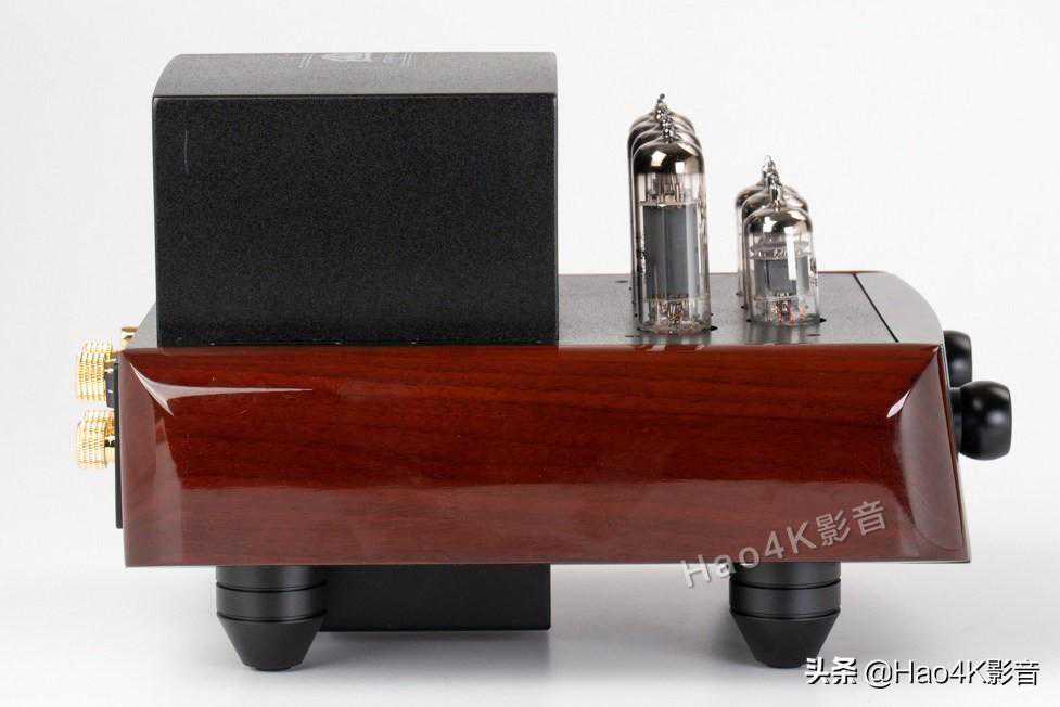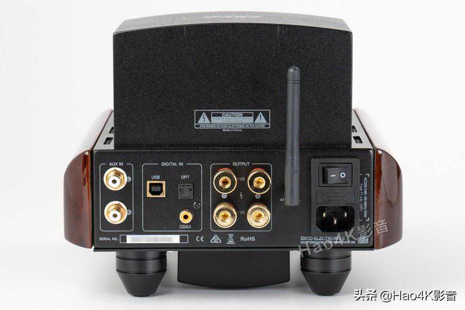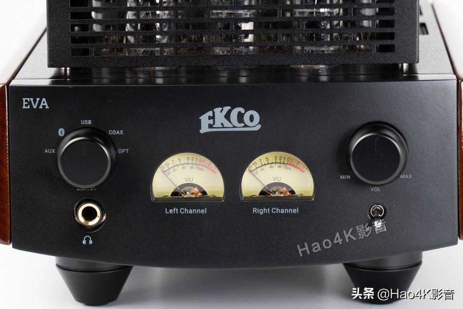 因为是百年品牌,IAG特别重视[基于品牌历史延续]的设计风格,所以每一部EKCO的器材,都是既创新又复古。就以EvaBT来说,这是一部小功率真空管功放,古朴精巧的机箱造型,两侧加上原木饰板,外观设计老味十足,点燃昏黄的真空管灯丝,面板还有双UV表头,听音乐时看着指针活泼的跳动,煞是漂亮,且古意盎然。