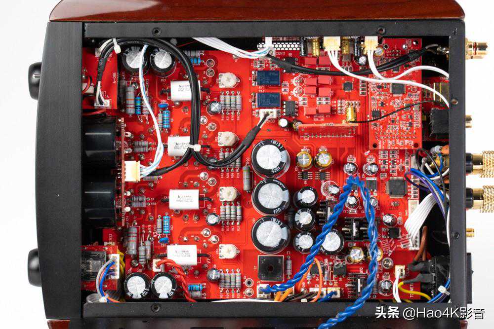 打开机箱内部,用料甚佳,滤波电容选用日本Nichicon,100uf耐压450V用了4颗,对12瓦(或6欧姆15瓦)的小管机来说,够用了,线路板上到处看得到德国Wima红色电容补品,交连电容则选用Luxman产品,可能有老Luxman的味道喔!