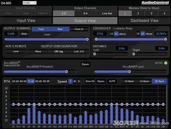 通过软件可以实现6声道的独立30段EQ均衡、信号延时和相位校正等精细调音,同时跟六声道功放一样集合低频校正AccuBASS专利技术、信号感应技术以及MILC(MaximumInputLevelControl)最大输入电平控制等黑科技与一身,跟可结合AudioControl的RTA音频测量仪来使用,对音质和声场环境有更全方位的校正能力,临场感真实自然。