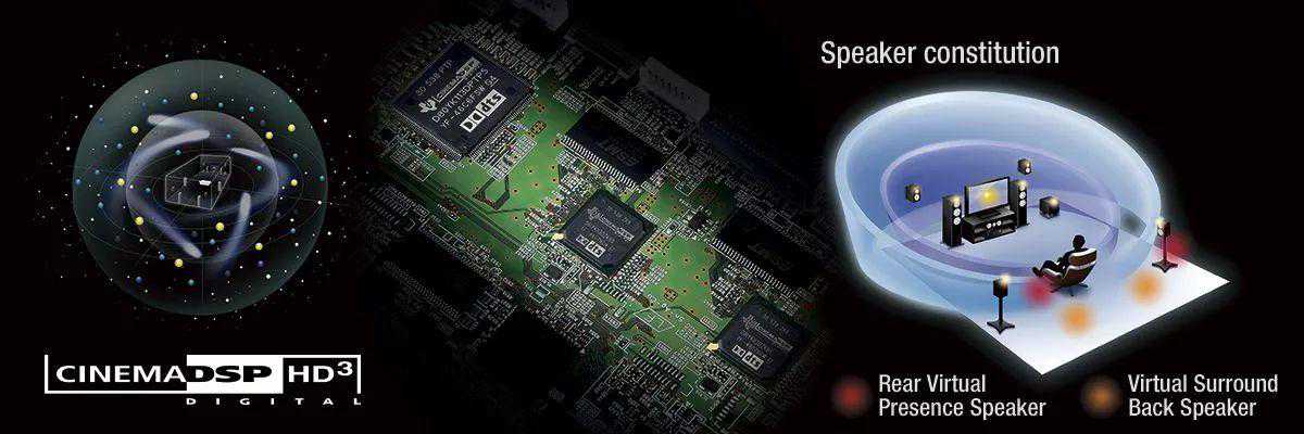 此AV扩大机支援DolbyAtmos或DTS:X等最新的环绕音效格式与CINEMADSP融合的CINEMADSPHD3。带您进一步享受天空声道环绕音。改善后的CINEMADSPHD3提供了新的信号处理计算以及高性能处理器。为了展现最佳的影院效果,精准的重现拟真音场、真实感与无边界的感觉。你将会感受到真实的影院音场与身歷其境的效果。