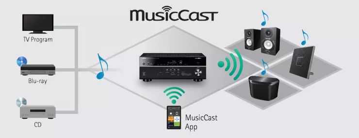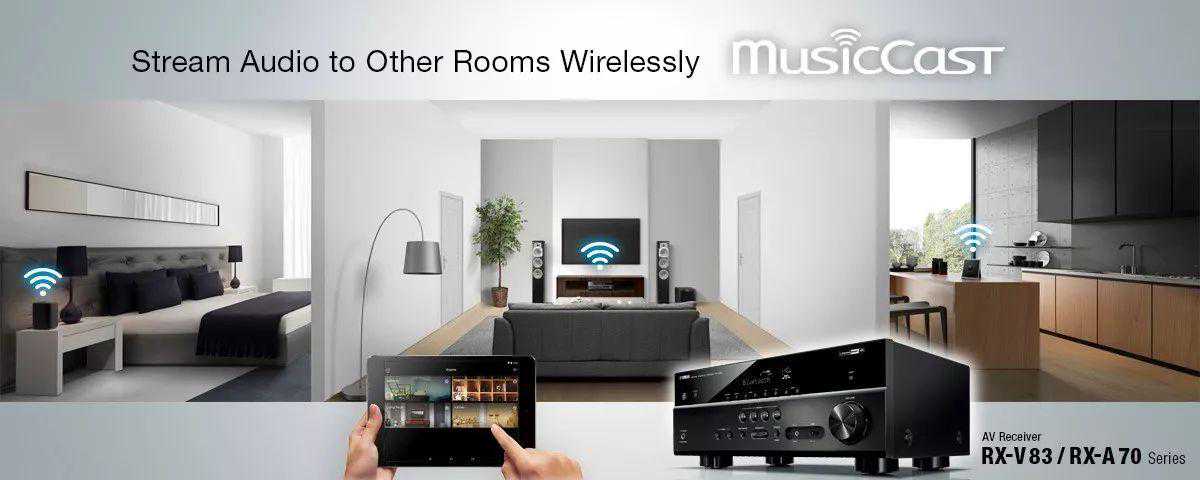 MusicCast透过高效能的无线网络功能传送音讯,它可以从你的手机、电脑或NAS传送数位音乐内容到家中任何MusicCast装置,甚至可以分享连接上RX-A3070例如电视或蓝光播放器的外部装置。透过蓝牙连接的智慧型手机或平板音讯内容,可以透过MusicCast传送到不同的房间。