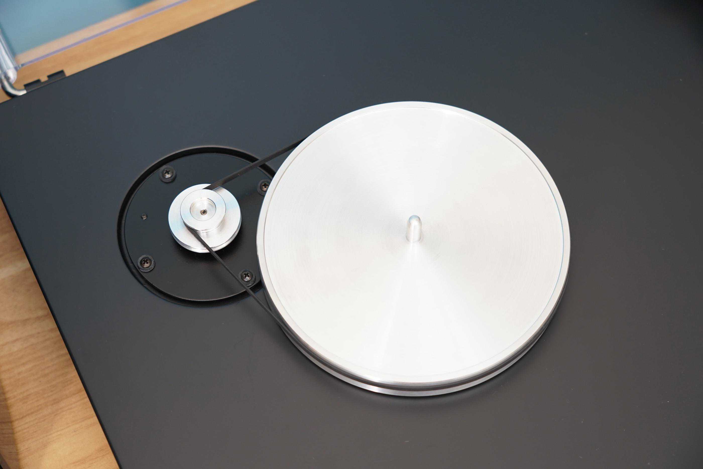 但其又是一台高度部件分离设计的唱片机,高精度平衡铝制主转盘、钻石切割的副转盘都是拼装式设计。