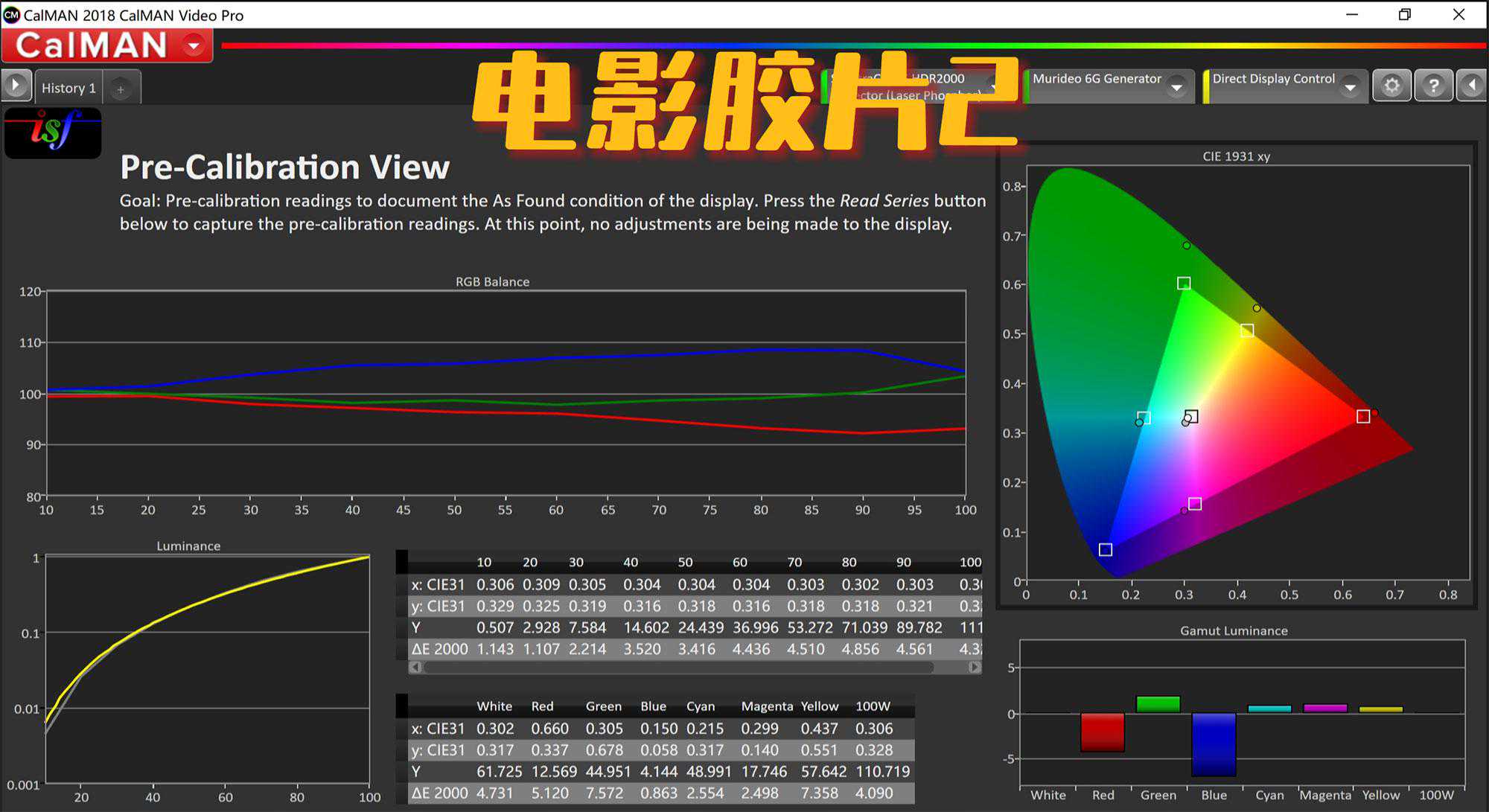 同时XW5000的色彩校正也非常好用,调整参数,数据变化很线性很可控。不像明基HT6550手动调试色彩落点就乱跑。并且,最后我随便调了一下,平均色彩失真就降到了1以内,达到了0.94。