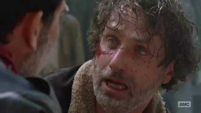 编剧是真的沉得住气,尼根用整整一集的篇幅来摧毁瑞克的意志。亚伯拉罕,格伦再到瑞克儿子卡尔的手臂,最后还要押走弩哥作为人质……一步步的紧逼,让瑞克彻底崩溃在众人面前,让整个团体的精神支柱荡然无存。(拍摄组为了保持噱头在第六季末尾拍摄了每个人都被敲头的镜头,到第七季开篇集居然严丝合缝的全部用在了剧情里,为此不得不佩服编导组的深谋远虑。)