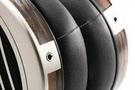 SUSVARA和HIFIMAN自家的HE1000V2($2999)有些相似。头带和头梁部分基本相同。耳机两侧都有简约的金属格栅,意在允许单元背面声波自由流动。两者都有可拆卸的耳机线,包括用于单端或平衡连接的线材,左右声道都有单独接地。