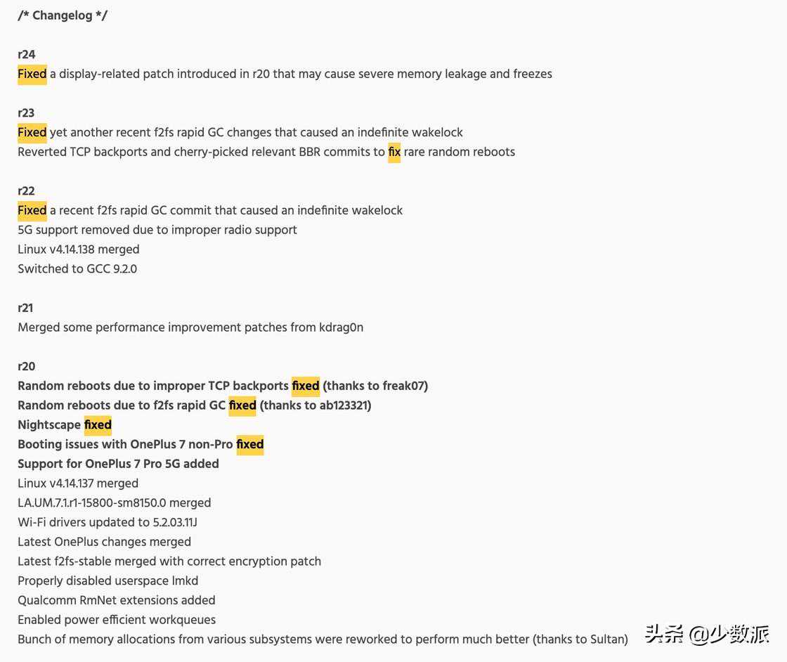 又帮官方内核除虫优化,又整合来自上游的优化代码,难道第三方内核真就这么香?「实验性」、「最新」、「极为先进」这样的字眼,往往与「不稳定」挂钩,新生的事物往往需要好几代的更迭才能逐渐被证明为可靠、稳定的。不妨在Changelog(更新记录)搜索一下fix(修复)这个字眼,看一看有多少更新是为了修复引入最新优化所带来的bug。
