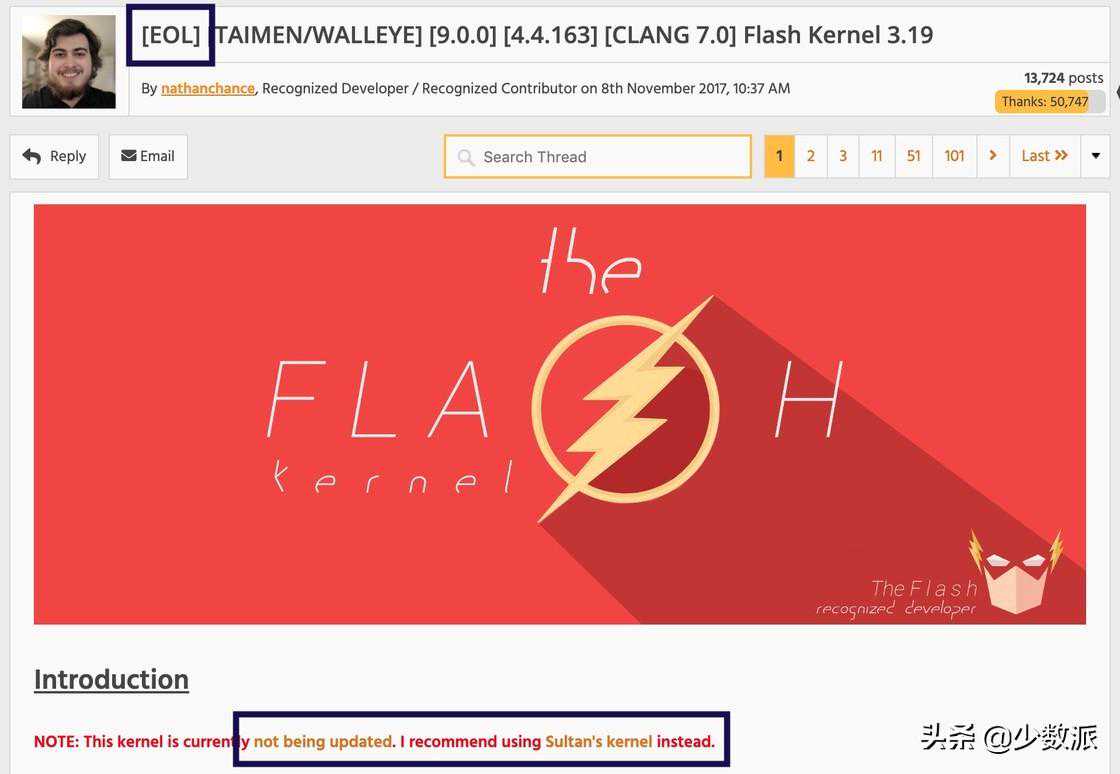 4、是否仍在更新、维护。只要设备的系统还在维护、固定收到月份安全更新,那么第三方内核就有必要跟进更新,覆盖包含新的安全代码。一旦一款内核在标题标注了EOL(ofLife)或是许久没有更新,就已经失去了刷入的价值。