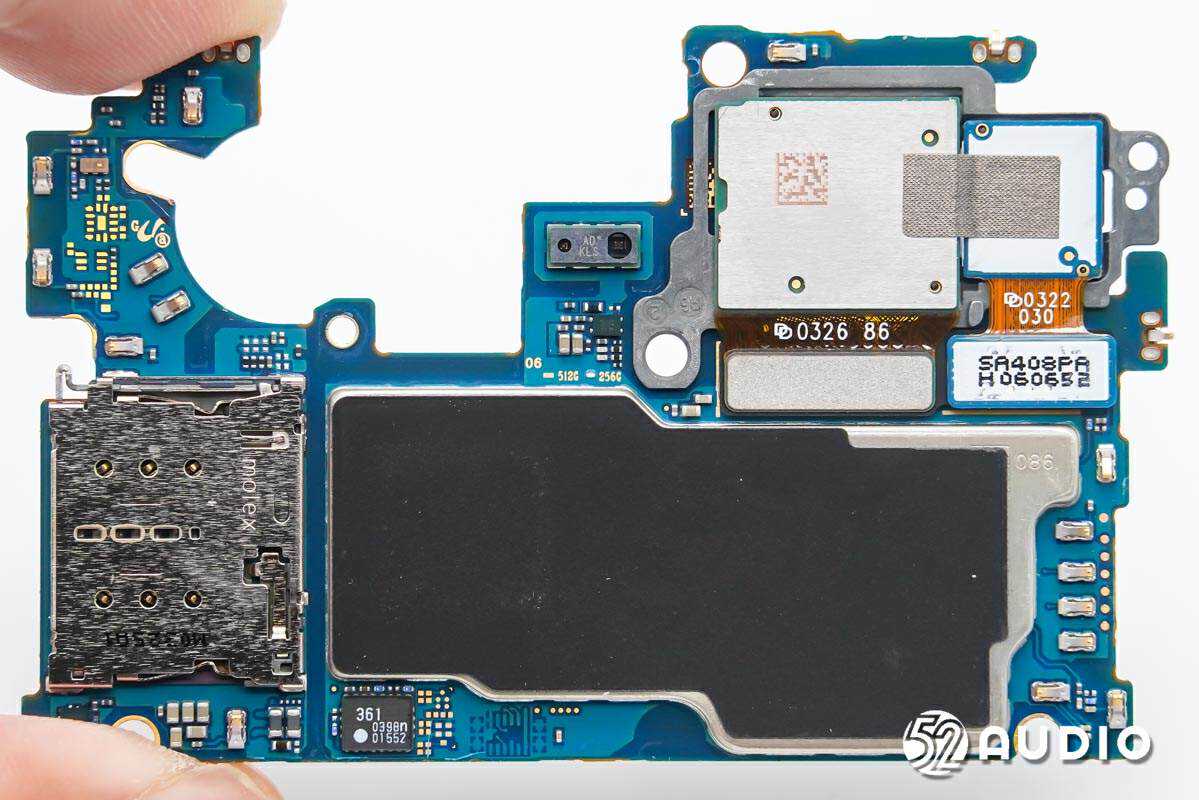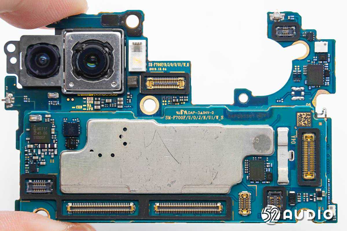 手机主板采用堆叠式设计,从而大幅节省机身内部空间。主板一侧设置有屏蔽罩防护,边缘固定有摄像头模组。