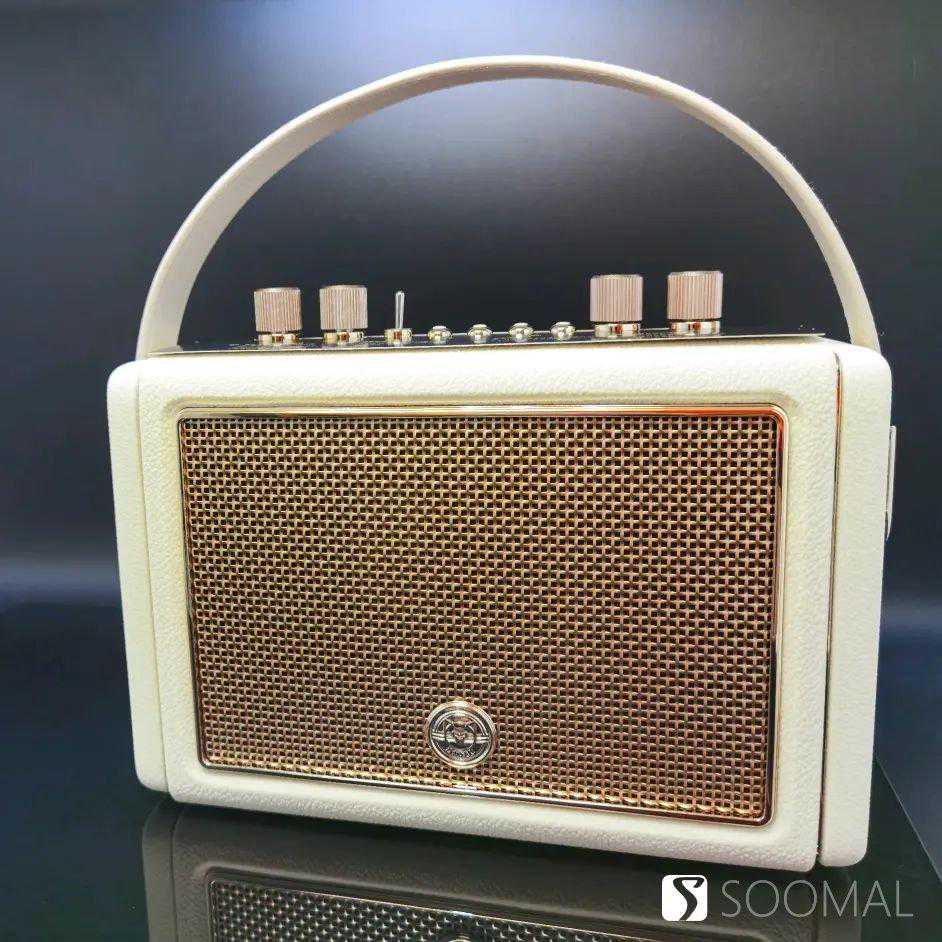 这款音箱初听有一点奇怪,低音与高音都很突出,但中频人声却还特别饱满,低频弹性很好,量感也充分,随机播放了几十首歌曲,低音都可以烘托出良好的氛围感。中频部分更加适合男声演绎,女声略微有些暗淡,或许有刻意营造当年收音机的音色风格?可能因为蓝牙仅有SBC模式可选,高频不算特别出彩,偶尔一些乐器在高频会有特别的拔高,中高频相对会暗淡一些。