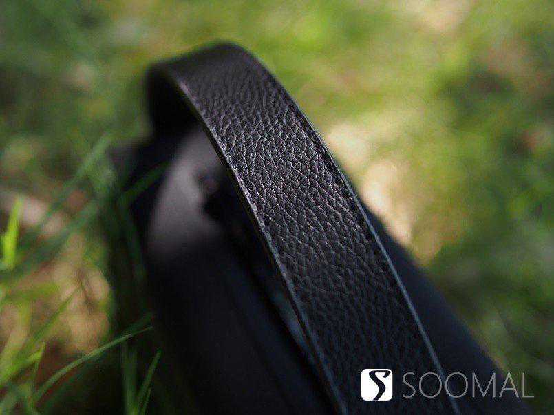 猫王Mate3的提手部分上面说了做了仿皮处理,加上缝线看起来质感不错,合适的宽度让长时间提着1.6KG的Mate3也不会有不适感,但如果背面做些加厚柔软处理会有更好的手感。底部的宽大的防滑垫设计,让其放置在一些不是很平坦的地方也能获得良好的稳定性。