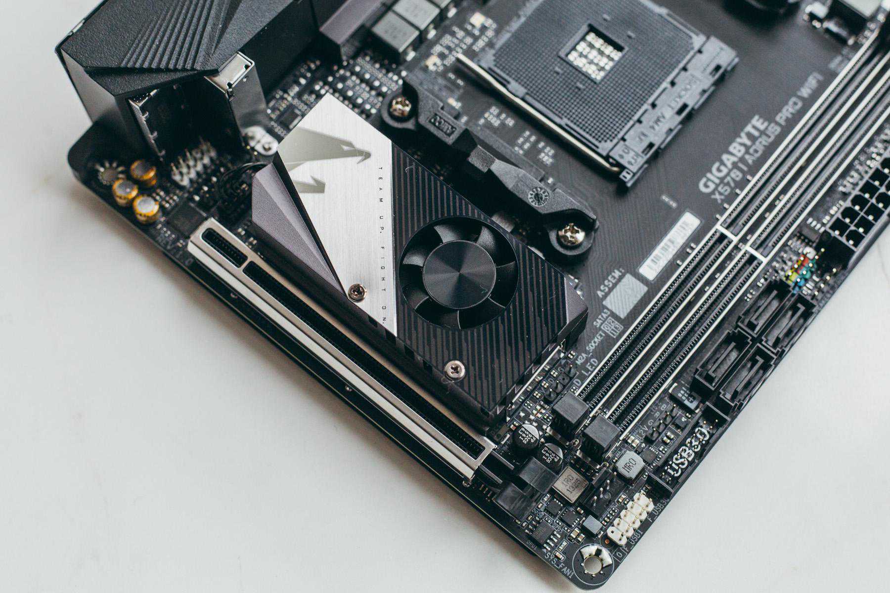 嘉技这块板子做工份量倒是十足,AM4接口,其中一个M2接口自带散热小风扇,Wifi6模组,其他方面表现倒是中规中矩。