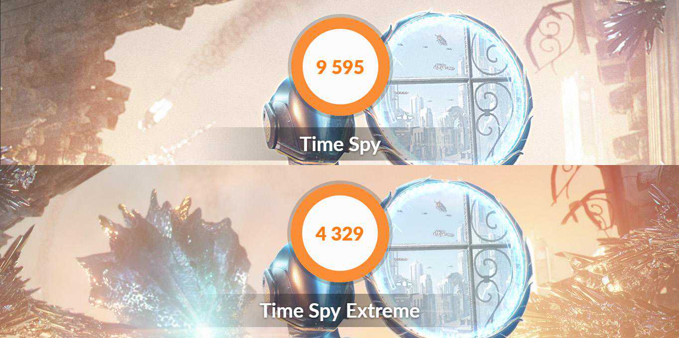 3Dmark跑分测试,Timespy分数为9595分,Extreme极限分数为4329分。