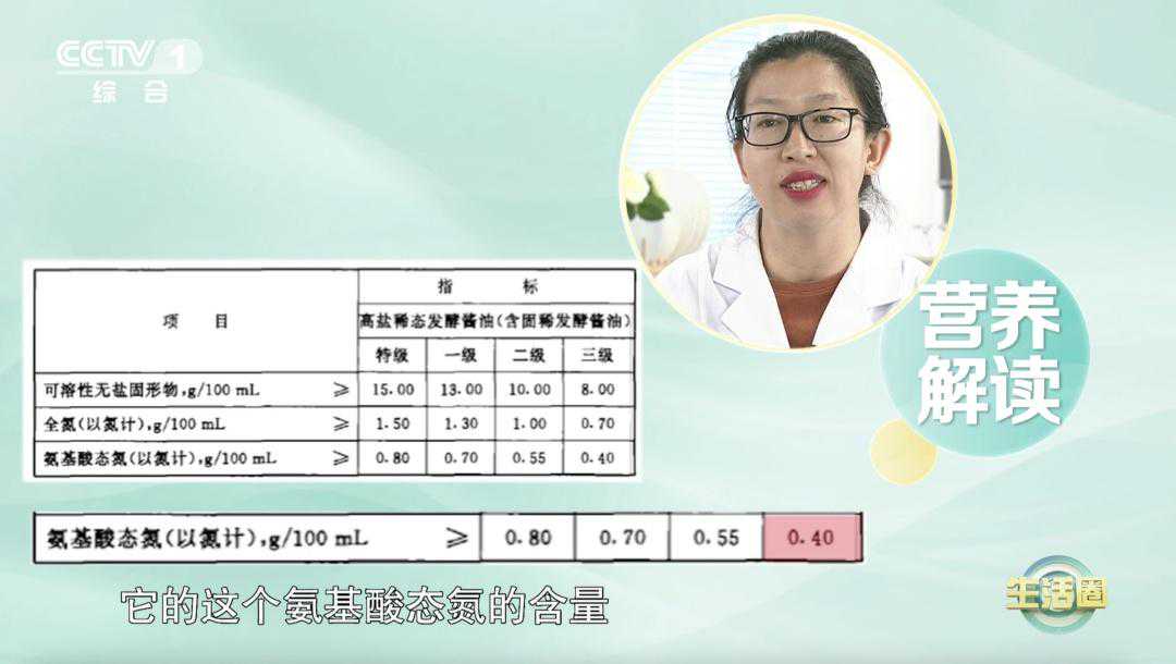 国家规定酱油中氨基酸态氮最低含量不得小于0.4g/100毫升,特级酱油能达到0.8克/100毫升,某些酱油甚至达到1.2克/100毫升。
