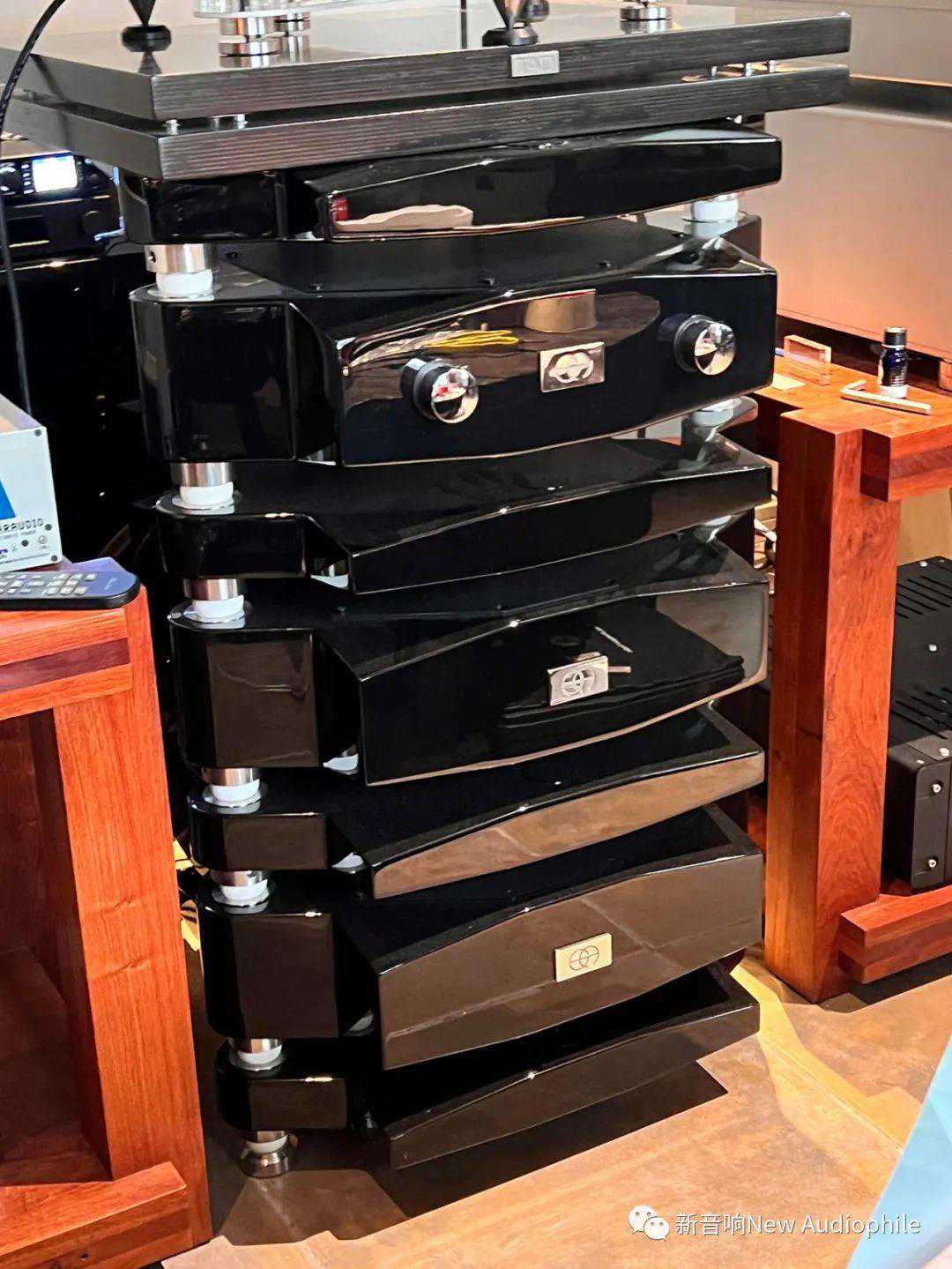 这套钢琴烤漆外观的器材非常夸张,居然是一部前级,后面还带着小冰柜似的分体电源