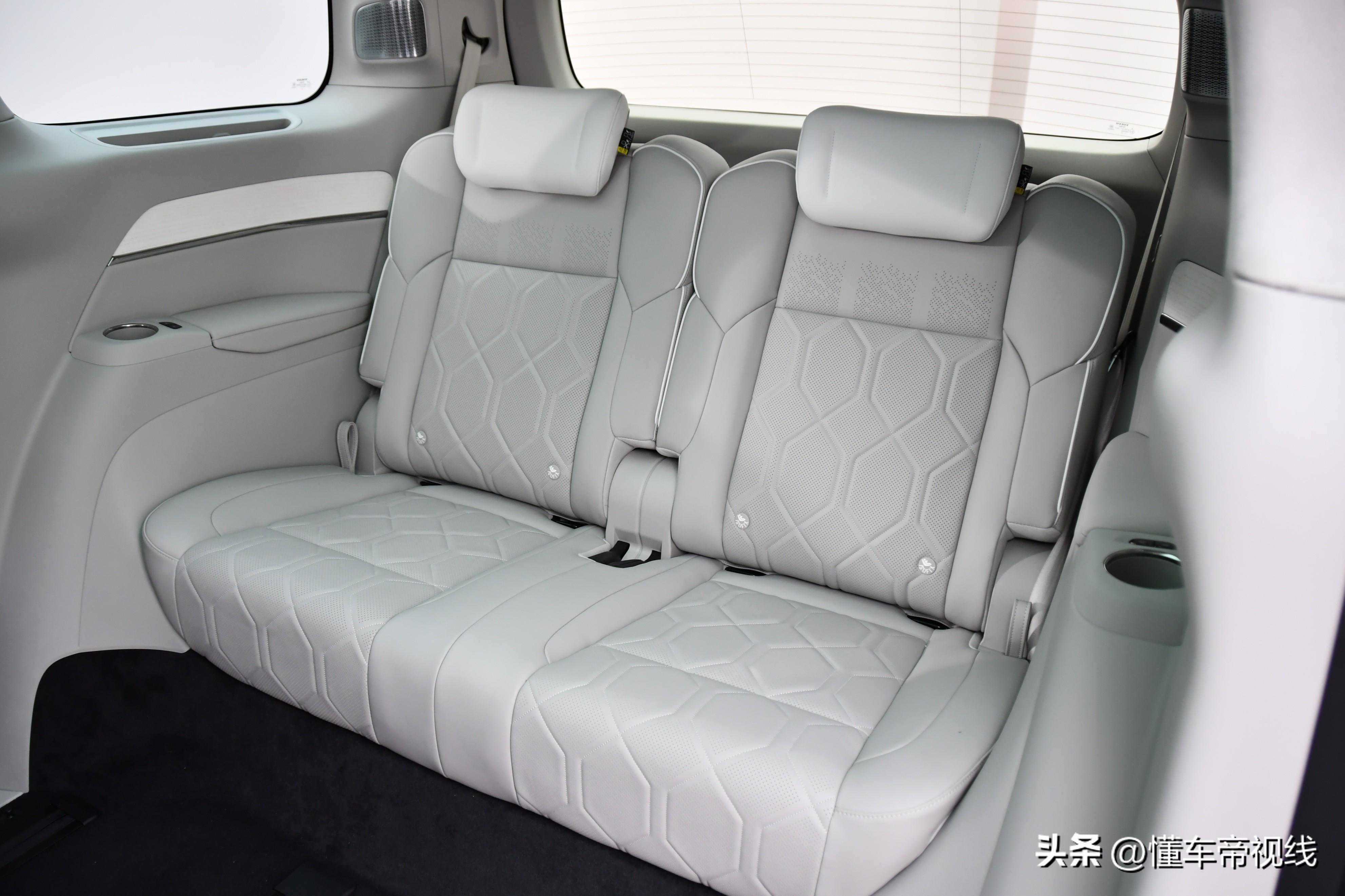 沃尔沃EM90车内采用了2+2+2的6座布局,第二排搭载的独立航空座椅配备了电动腿托、通风加热等功能,而隐藏在座椅扶手内的小桌板,在使用时有着更好的便利度。而在每个第二排座椅底部,还设计有USBType-C接口。实拍车辆还在第二排还配备了一块大尺寸的吸顶屏,能够为后排乘客提供更多的娱乐功能。