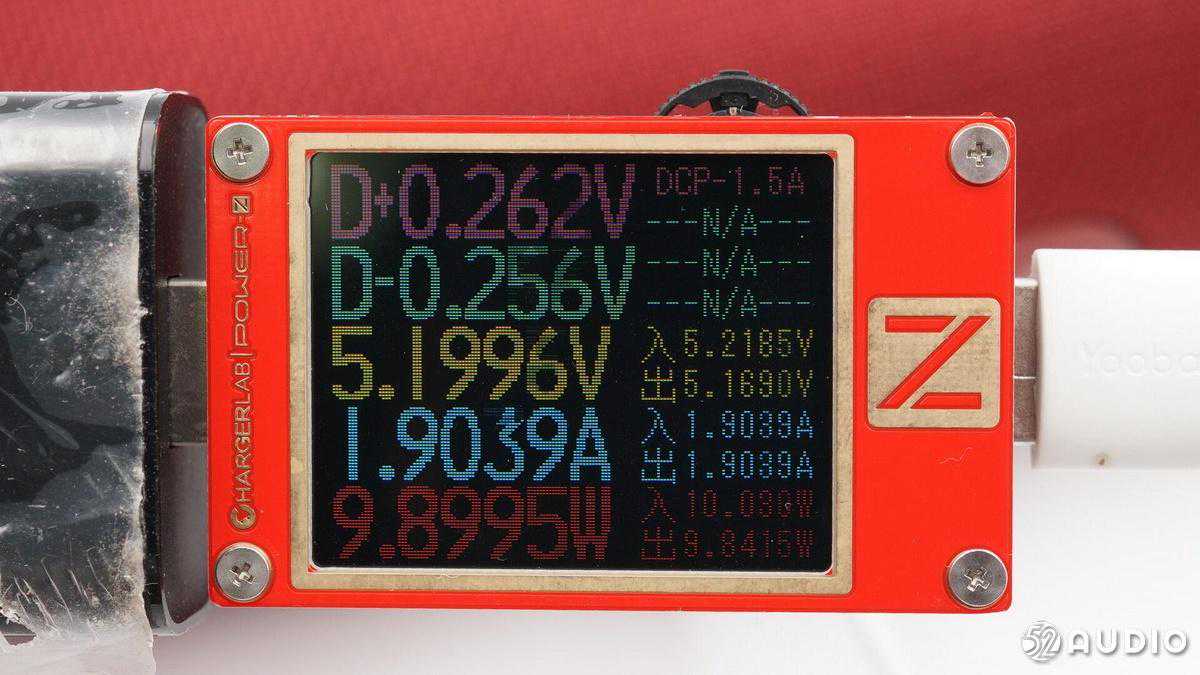 我爱音频网采用ChargerLABPOWER-ZKT002便携式电源测试仪对CleerSTAGE智能语音蓝牙音箱进行有线充电测试,输入功率约为9.90W。