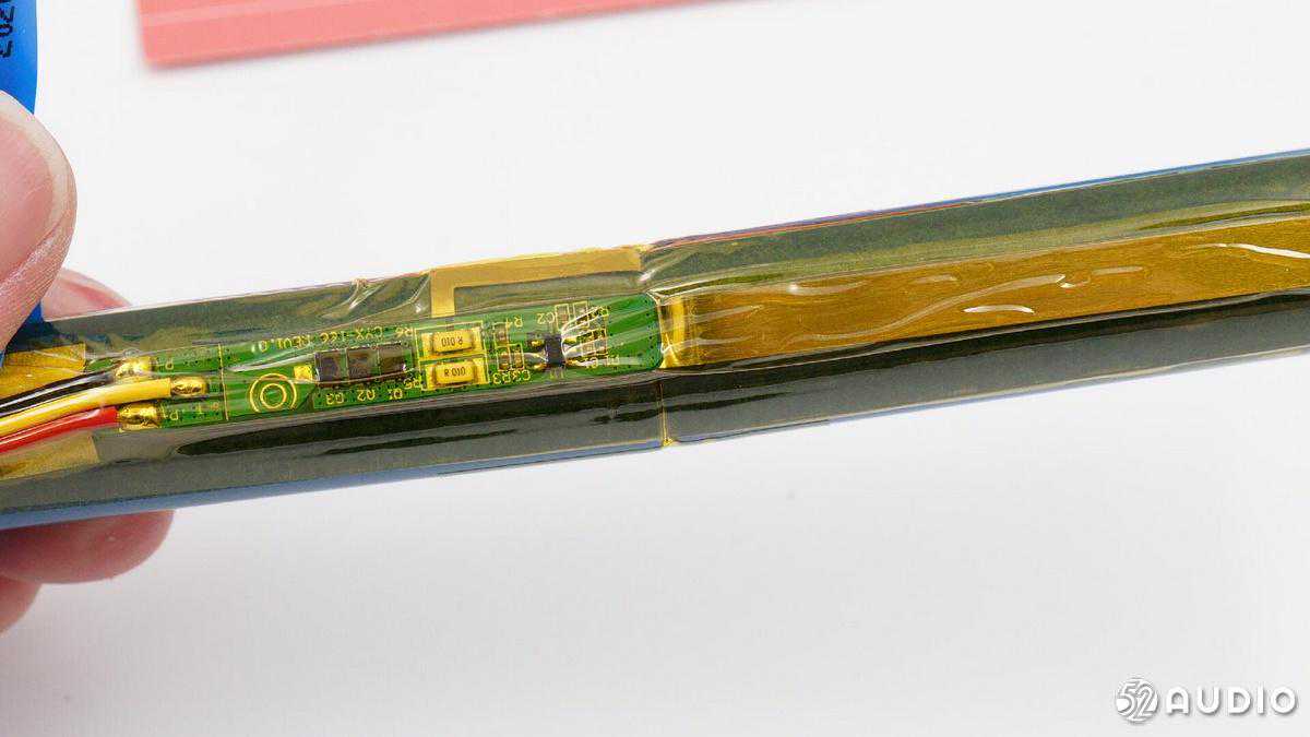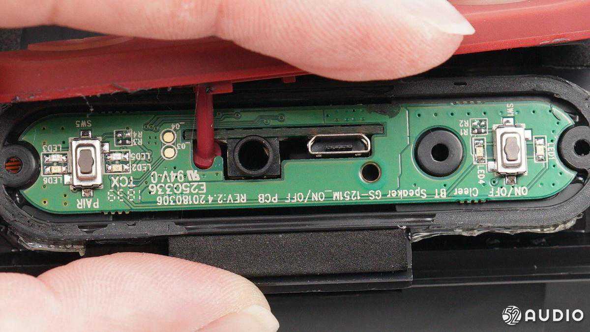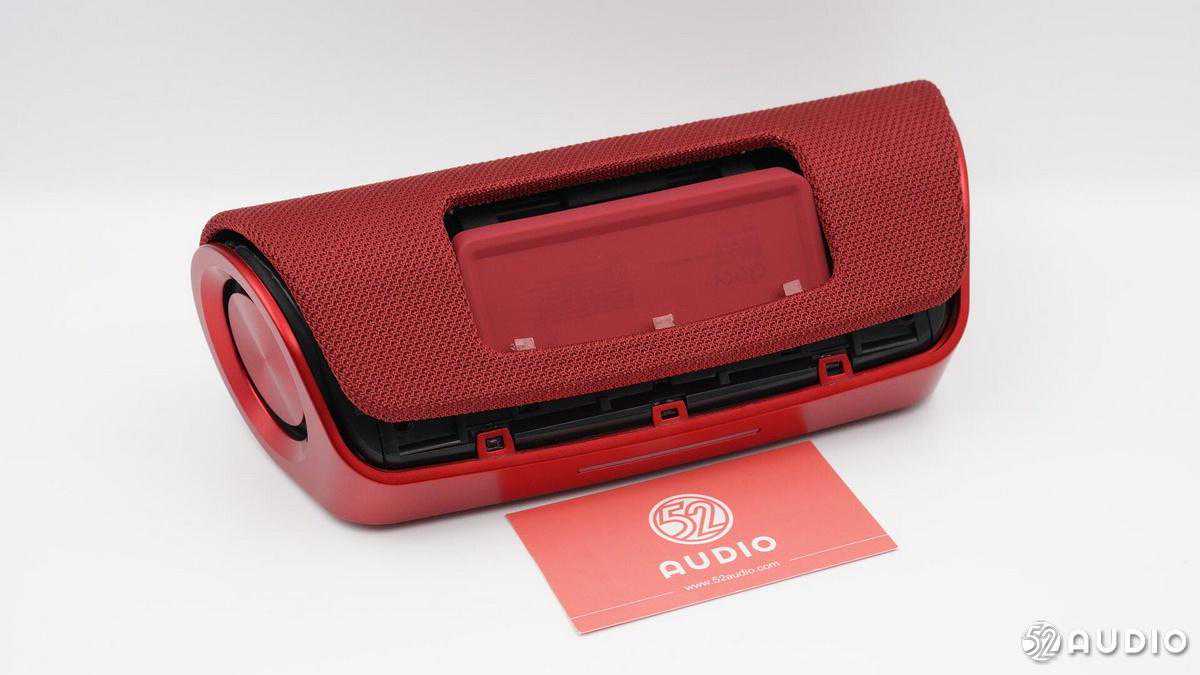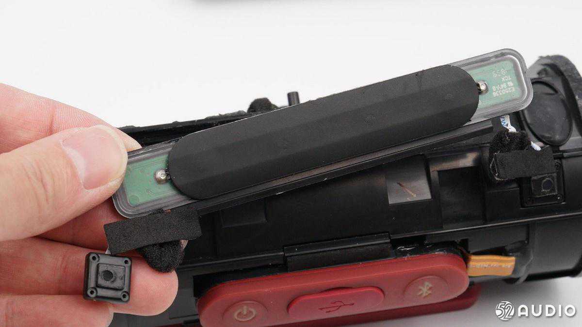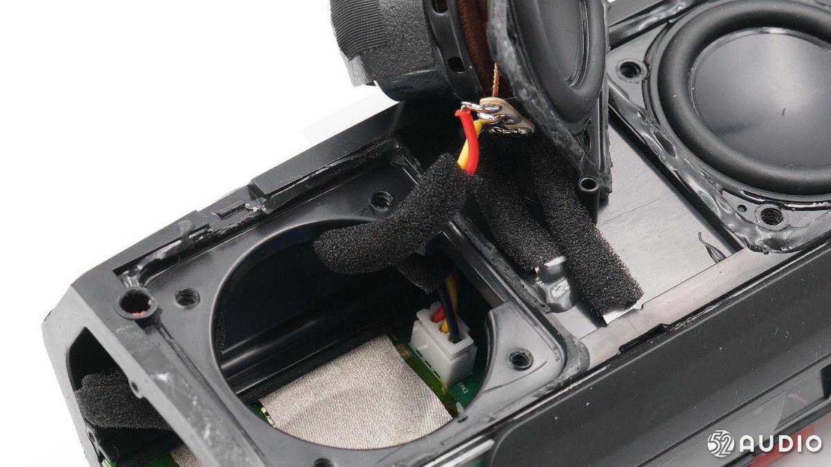 内部配置上,采用了两颗全频喇叭单元,左右两侧各搭配一个金属被动盆,结合德州仪器TAS571120W数字音频功率放大器,实现强劲的音乐体验;2串18650锂离子电池组总容量5200mAh,设置有双层塑料膜进行防水保护,并配备有电池保护板。