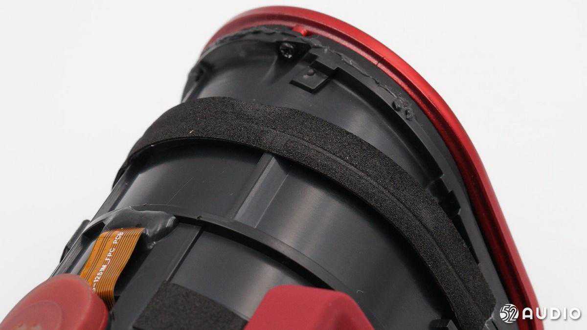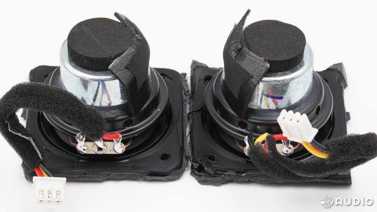 两颗全频喇叭单元一览,背部与主板交接的T铁上覆盖有一层较厚的缓冲棉。