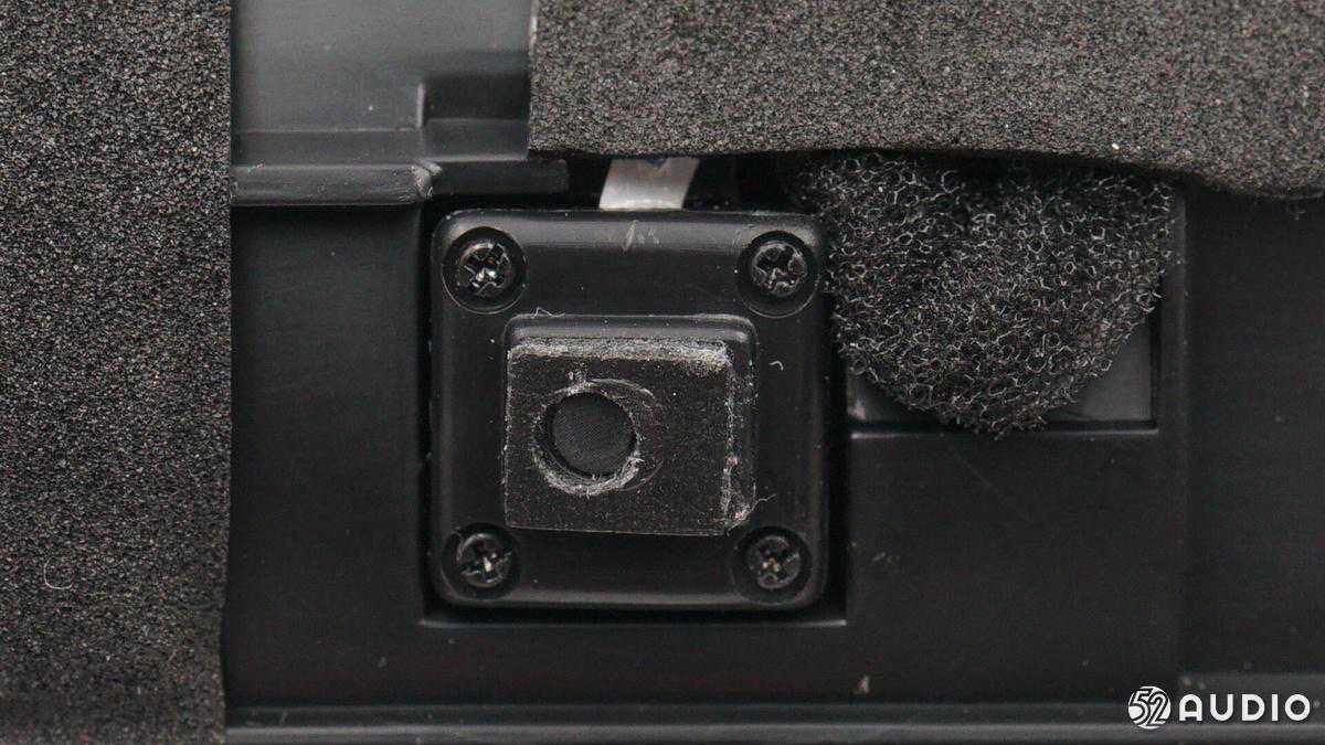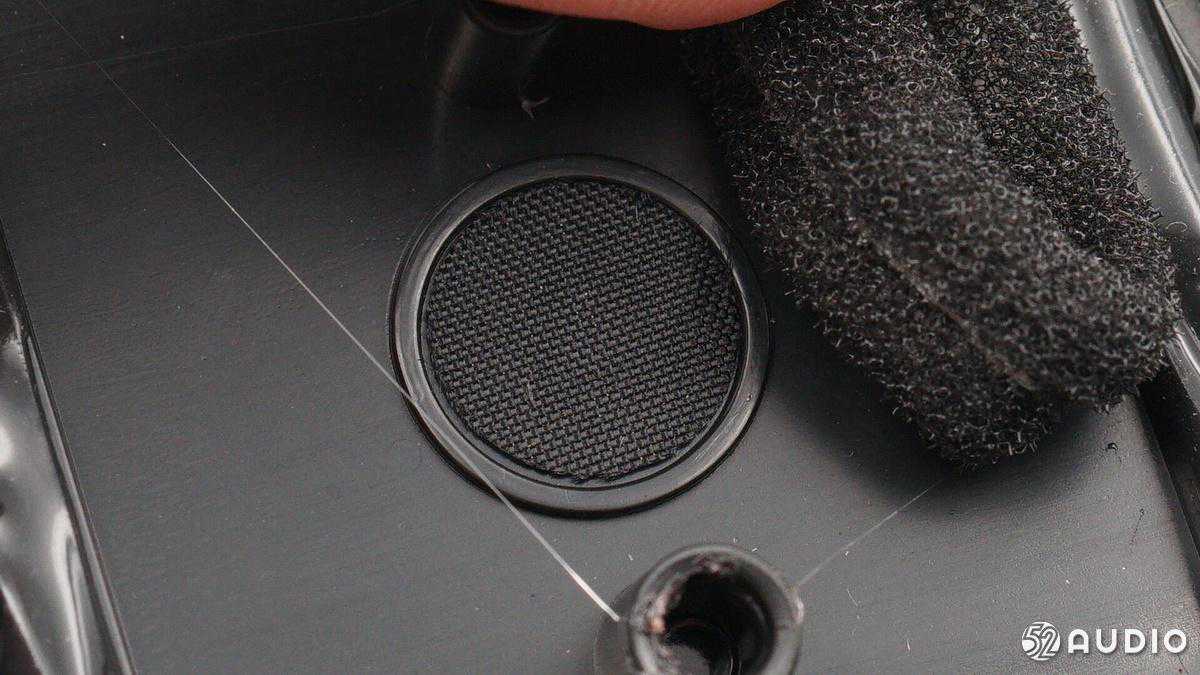 音箱调压孔特写,保持音腔内空气流通。