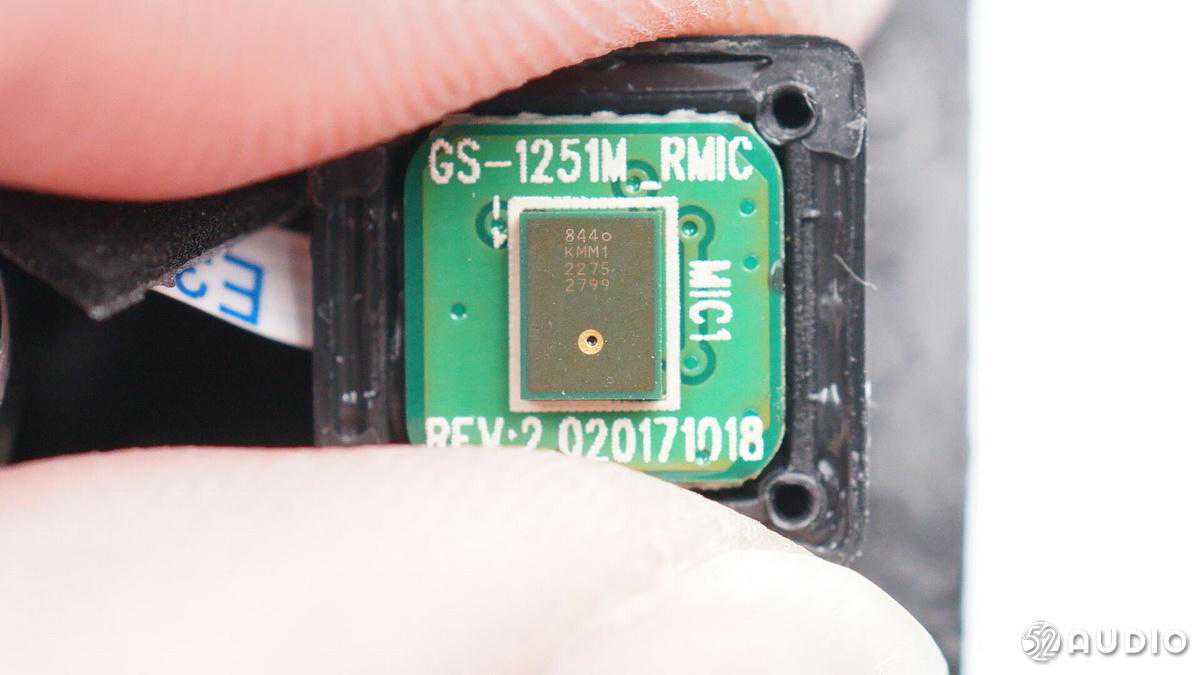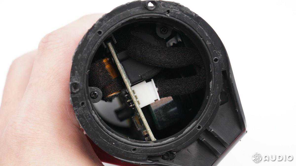 打开麦克风独立腔体,内部麦克风还有黑色橡胶罩覆盖。