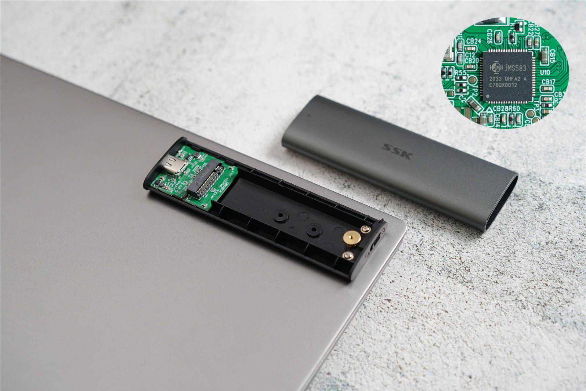 腔体侧边结构通过螺丝与主体衔接。主板通过卡槽固定在腔体内。