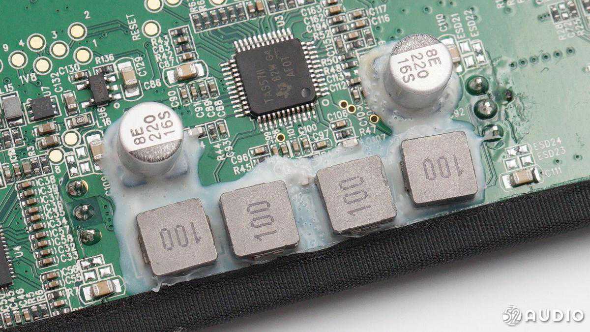 四颗10uh贴片电感,用于数字功放输出滤波,并且打胶加固。