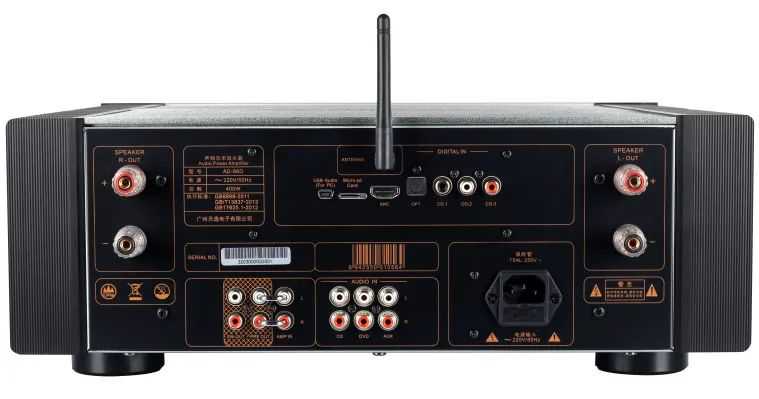 AD-86D自带USB-Audio、一组光纤、三组模拟和同轴输入接口,满足多样化的接驳需求;光纤、同轴具有PCM192kHz/24bit解码能力,强劲数字解码,支持蓝光机、CD机等多种音源信号输入。