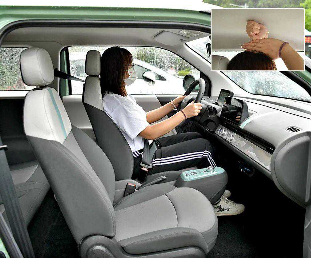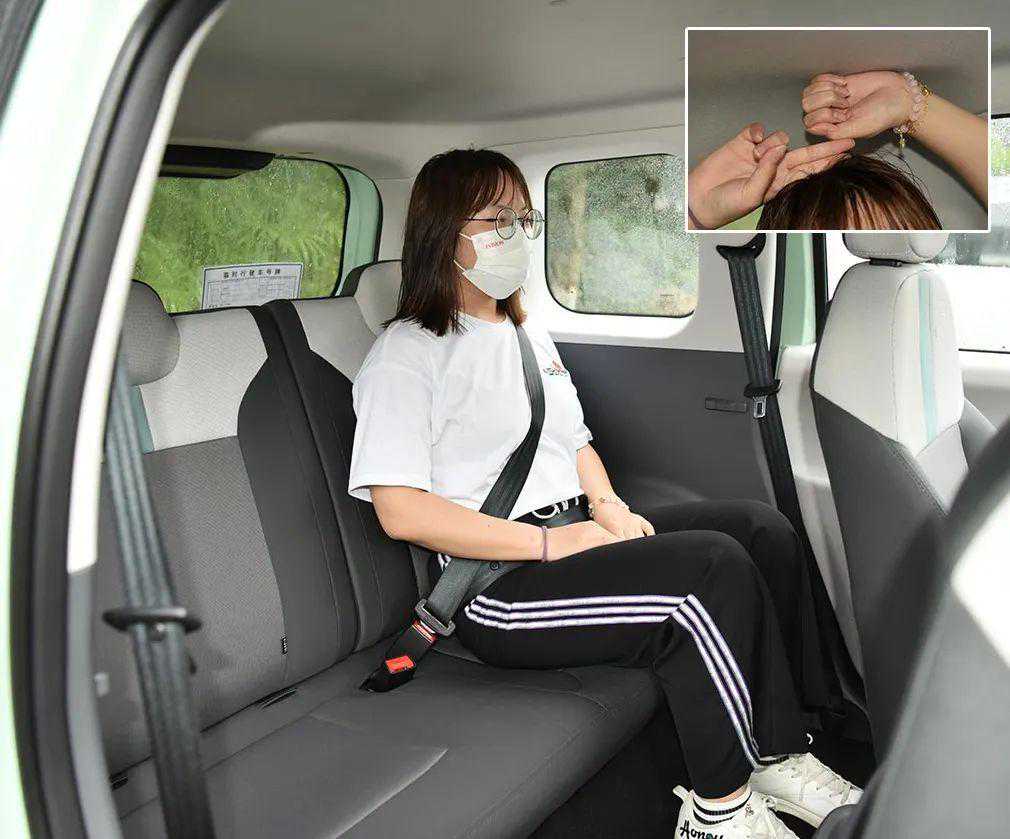 Lumin全系采用双色拼接的织物面料座椅,体验者身高160cm,头部空间为一拳四指,后排头部空间也能达到一拳二指。