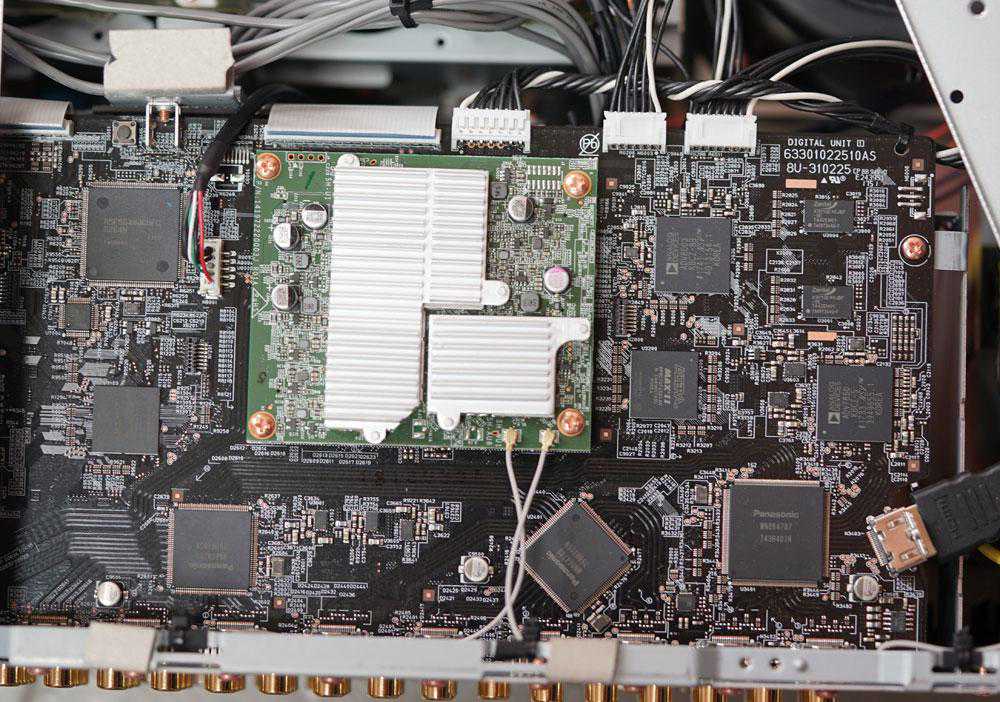 这一块是HDMI解码板,上面绿色PCB板是网络处理部分,HEOS功能也由这块完成处理。