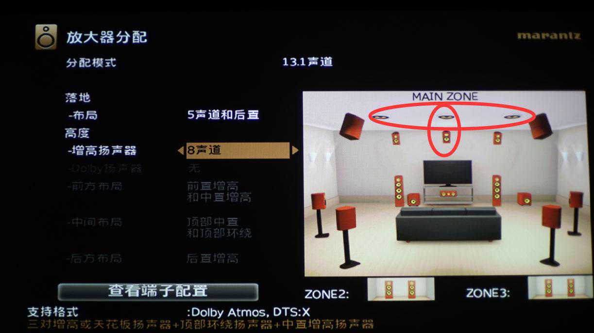 请大家注意,我划出的红线中一共有4支音箱。而红圈外已经是7.1.4声道。也就是说,这个示意图一共是15.2。