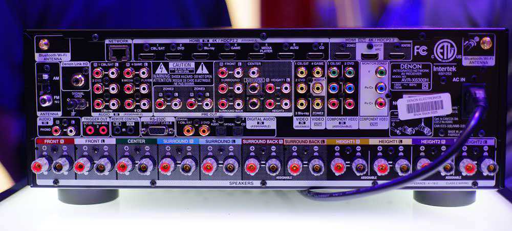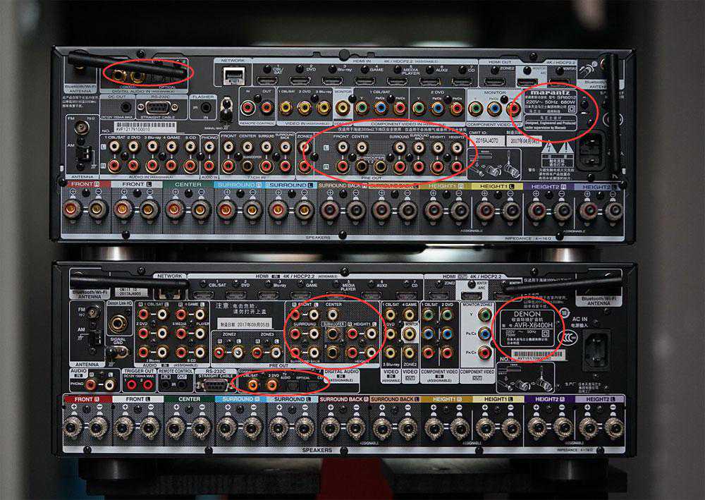 而天龙AVR-X6400H则是如此布局。这两种布局我更喜欢马兰士的,因为天龙这个插拔线的时候,各容易被旁边的接线挡住。有时候你会因为要插拔一根线,从而要拔掉周围的连线才能完成。