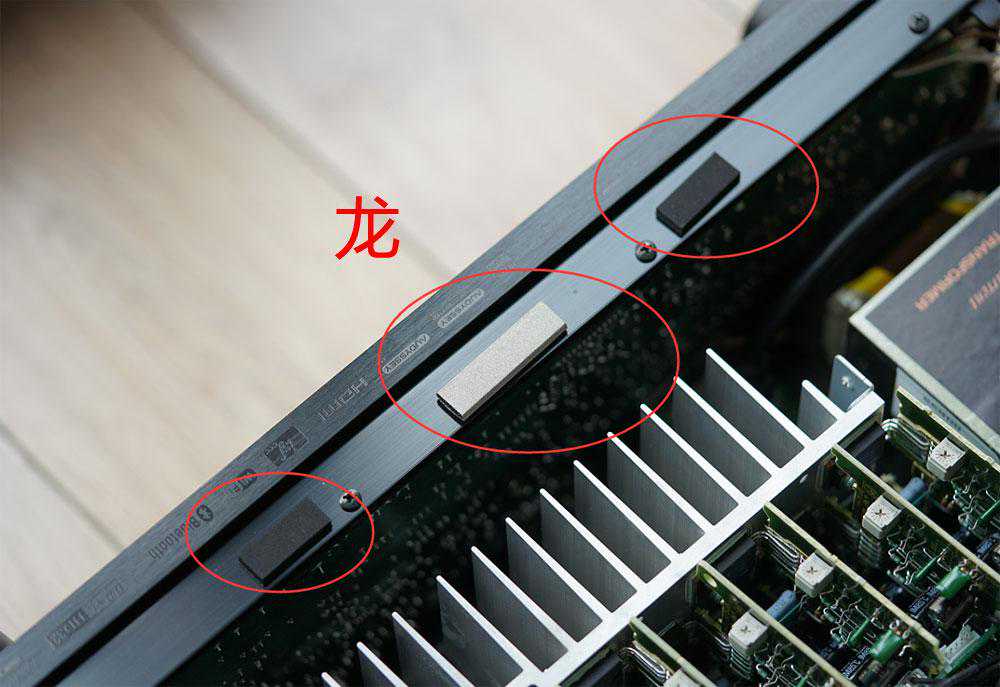 机箱的中间部分相对正对更加薄弱,天龙AVR-X6400H在这一部分还有一个减震支撑垫。